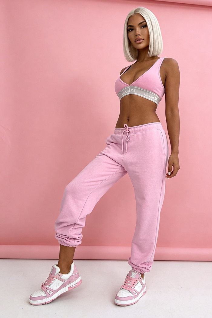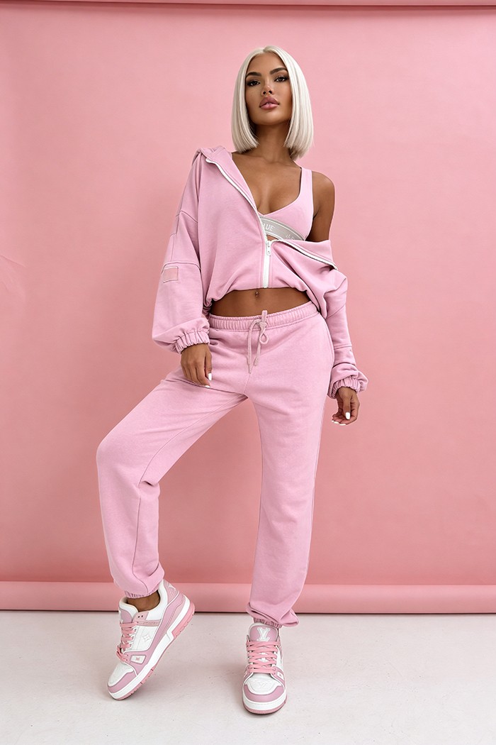 Komplet dresowy3w1 spodnie bluza top puder Sporty